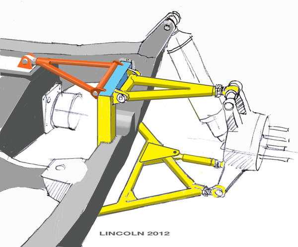 I worked all fall on the measuring and detailing the rear (and front) suspension to get a comprehensive 3D data base to use in designing the new bit for the rear. Shortly after Xmas, my friend and very accomplished racecar chassis engineer, designed the new rear double wishbone rear suspension. I wanted it to fit within the existing sheetmetal, although we did have to weld in some new brackets on the frame.
