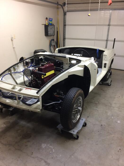 After finally getting the engine and gearbox mounted, I installed NOS emissions components, new radiator, new oil cooler, NOS heater valve and all new rubber hoses and belts. I know many in the MG world are thinking I am nuts because emissions aren't required in Texas. BUT!! The car came that way. So emission will be done at least for now. The air pump was rebuilt, new check valve, new gulp valve, new air rail....you name it, I found the parts! Locating an air pump hose was a tuff one. I ended up finding a NOS one from a fellow MGE member, but I also in my search think I found a solution as well. A Jaguar air pump hose has almost the same shapes; and I think it could be cut and spliced it to make it work.