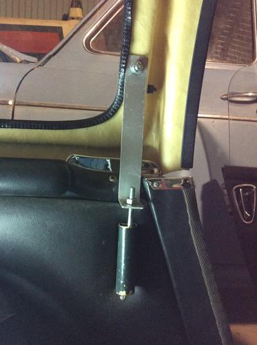 The photo shows the fixing required to fit into the soft-top frame mounting slots just behind the "B" pillar.