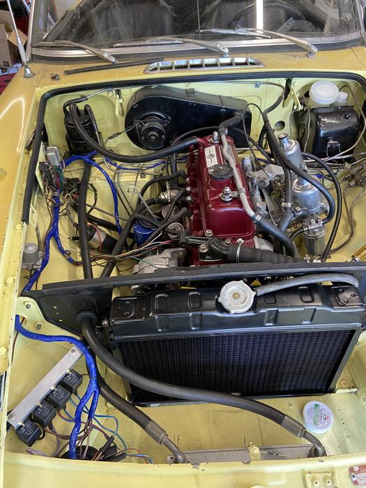 This weekend it was time to check the valves and the timing. Adjusted the valves and timing and tweaked the HS4's a little and smoothed out the idle quite a bit. Still not great but good enough to take it for my first ever drive in this car. Off the stands, aired up the tires and cautiously checked the brakes and first and reverse gear. Decided to get it out in the sun and since we have a steep driveway, positioned it so that I could drive it forwards down the driveway. Quiet streets because of the shelter at home order so without a hood, expired plates and no turn signal switches it was time to see how it would do. Finally! I have a running, driving and stopping car. But it's not done. Stay tuned.