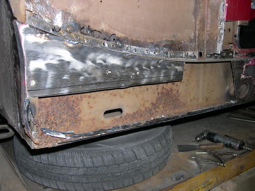 Here are a couple of pictures of the car when I got it back in July of 2015. I drove it for three months, before the weather drove me inside. Both fenders are off, and being repaired. the drivers side rocker, has been repaired, and both lower hinges on the a posts, are done too. Both seat were taken out, and the adjusters freed up. The floors were cleaned, primed and repainted. After i finish most of the body work, there is a long list of items, that need to be addressed, before the spring weather comes. Carb rebuild, starter rebuild, new rear brake shoes, and the list goes on :>
