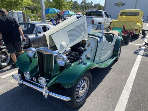 The 1953 MG is Awesome to drive. She has the quick precise steering, and the dead flat corning of these old race cars from the past. It’s fun with a capital fun! Got some pretty good looks at the show. Some nice comments too. Lots of thumbs up on the drive out to the show. Janet ate that up. Further, there were tons of Corvettes there… So no one really paid much attention to them. On the other hand there was only 1 MG TD! How’s it drive? You asked… Ya gotta cram yourself...