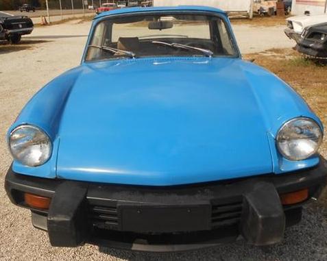 I originally came to the Classic Car lot to look at a 1975 Jeep Cherokee. During that drizzly day my brother and Mom were with me. Somewhere among all the gawking my brother Phillip called out to me - "Vern come look at this!" Hidden away among the real junkers was a blue 1980 Triumph Spifire 1500 in need of some TLC. It had a mirror that had evidently been broken from the body through some violent act and an interior that had seen better days. The dash appeared to have gotten wet somehow...