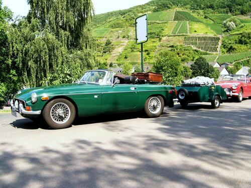 I am a young guy from1951. I own my MGB since 1994. This car was shipped from England to Arkansas USA and finalyto The Netherlands . When I bought it it was in a very bad condition but running! No rust, but bad interior and a lot of dents. After restoring we sometimes used the MG for our vacation ton France and Germany A few years we had all our luggage in the car en in a big leather suitecase on the trunk. But since a couple of years I bought a towing bracket and a little luggage van. Its...