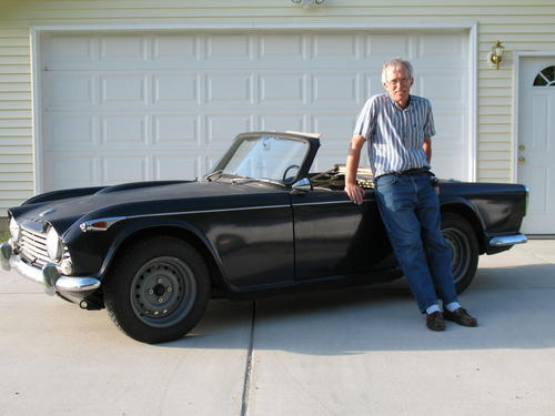 I first got back into English sports cars when a friend asked me to team up and import 2 Minis from England. Once I had my Mini on the road another friend kept urging me to attend their MG Club meetings. The club is great & soon I was looking for an MG. I found a red '77 "B" and have been enjoying the car & the club ever since.The first "decent" car I owned (following 2 or 3 clunkers after high school) was a 1960 TR-3; powder blue w/white top. I currently have a TR-3 resto candidate-original powder blue paint! I bought the TR-4A in the picture about 1 year ago. It is in driving condition & I am having alot of fun (on dry days. It doesn't have a top yet.)