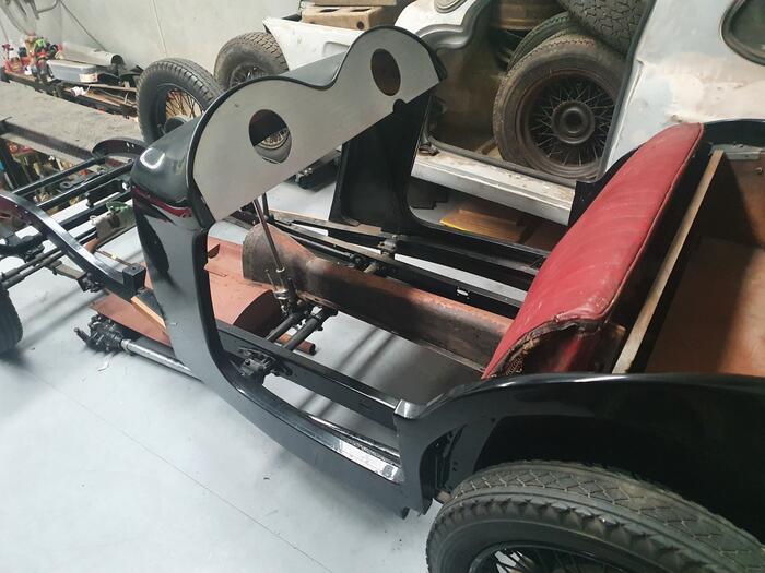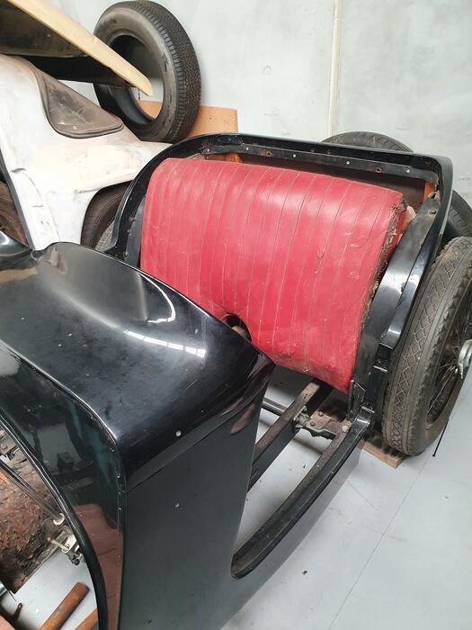 The then owner kept the car for over 39 years and over this time commenced a comprehensive restoration which unfortunately stalled. At that time the car was completely rebodied on a new ash frame, repainted to a high quality in the original black colour scheme and many minor parts refurbished. Engine work included new valves and porting along with fitting a new forged steel crankshaft and new forged conrods and pistons. However, the body and engine became separated and ended up in the possession of different people for many years.