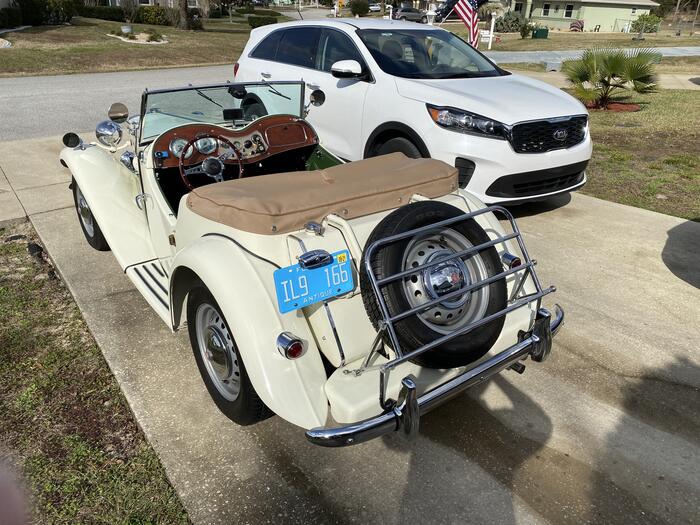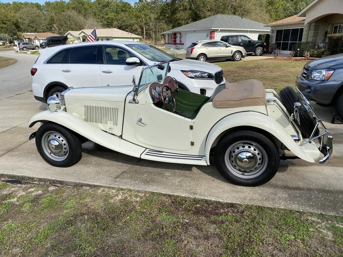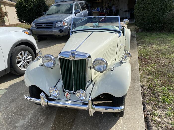 Total body off frame restoration completed in 2014. 2814 miles at purchase. It's a driver. Rebuilt gearbox December 2020. Changed the differential gear to 4.3 to 1 for better driveability. Will now cruise at about 70 mph at 3900 rpm. Used MGA gears in the original 1953 TD Differential. It appears as stock. Fenders removed 4/3/2021 for prep and repaint. Now British Racing Green. Now 4200 miles since restoration.