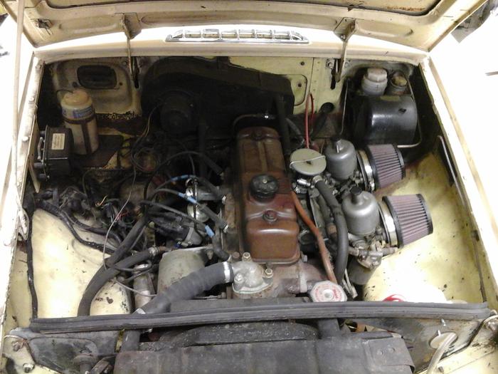 Nice little 67 in good shape for never being restored. PO installed a new carpet set after a thourogh cleaning and coating of the interior sheet metal. Had a head liner installed and new side panels as well. Seats may be original they are in good shape if they are original. PO installed the plastic battery box mods. It has just one 12 volt battery on the right side and is now negative earth. PO replaced the cross member and completely overhauled the front end with all new rubber and poly mounts on engine and tranny. PO installed new Michelin Destiny tires as well as tube shocks in the front. I have a set for the rear as well as the mounting kit. I have several more restoration parts. This rare, steel dash MGB GT is ripe for restoration, mechanically in good shape, engine tested at 165psi average, all 4 cylinders, wipers inop.