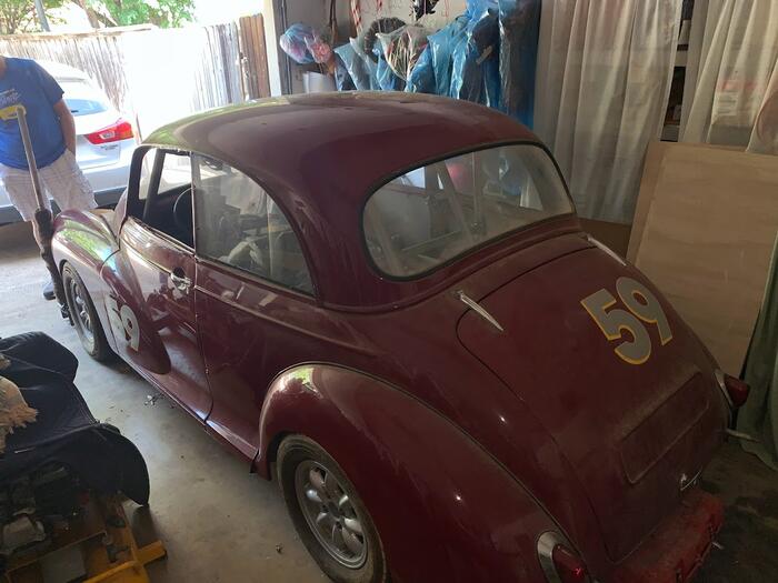 1961 ish Morris Minor Vintage Race Car. Built in the late 90's from a rust free street car donor. Full cage, 1275cc unknown internal with APT race head and 649/equiv cam. MGB 1-1/2 SU's. Car raced in CVAR in TX in late 90's and last raced in 2002. Car has probably run in the last 5-10 years and could be made to run off an auxilliary fuel supply and with re-installing the carburettors. Owner has a Texas title and CVAR logbook. I am helping the owner sell the car due to his declining health.